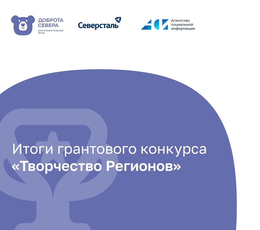 Благотворительный фонд «Доброта Севера» совместно с Агентством социальной информации и при поддержке компании «Северсталь» подвёл итоги первого грантового конкурса программы «Творчество регионов». Он направлен на развитие креативного потенциала в северных регионах России. Партнёром программы выступил «Союз российских городов».